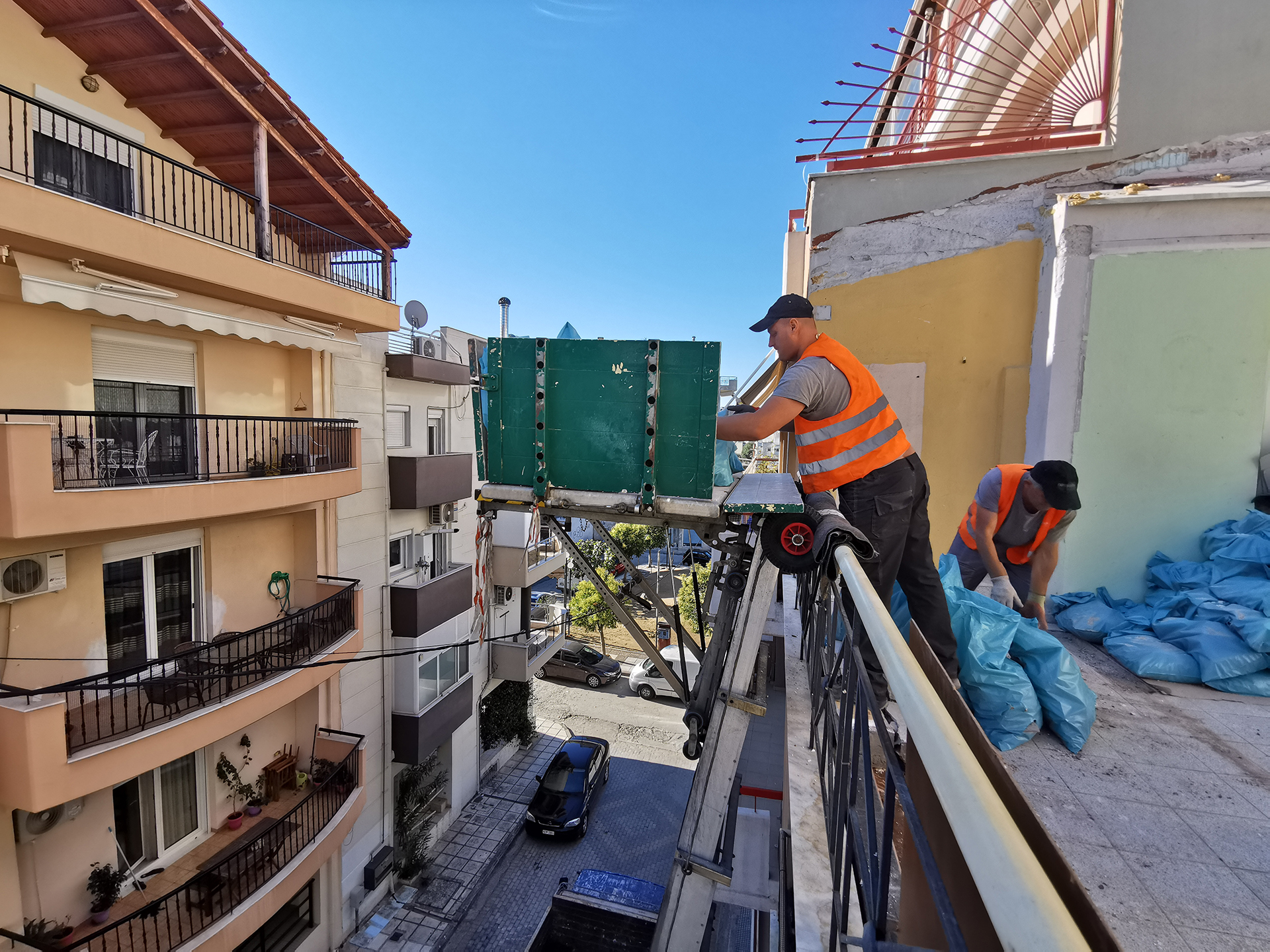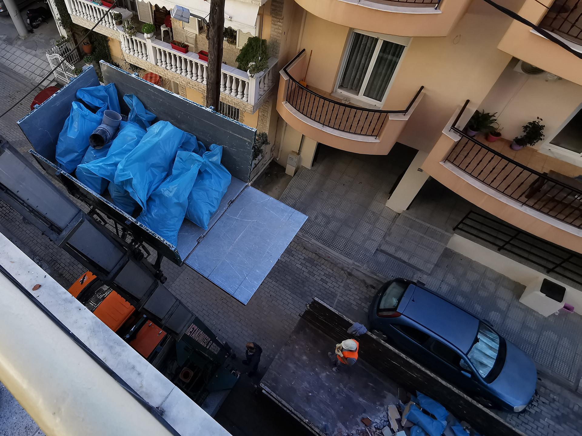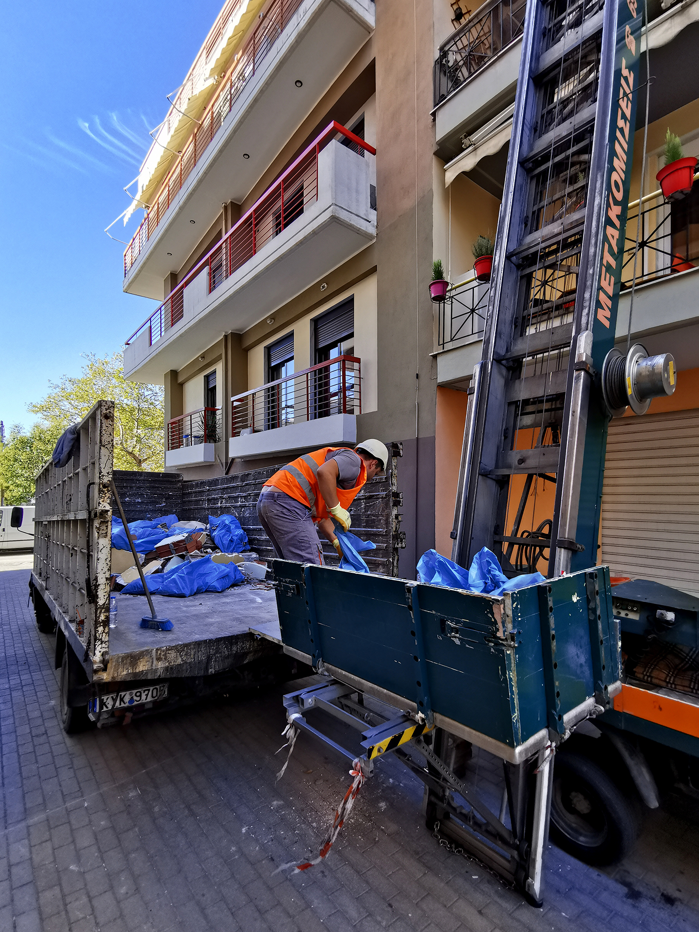 • Αποκομιδή και μεταφορά προϊόντων αποξήλωσης/μπαζών με χρήση ανυψωτικού μηχανήματος