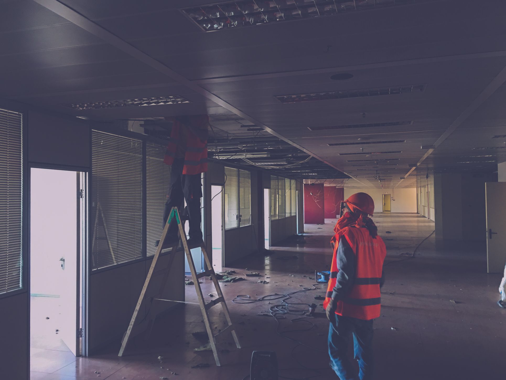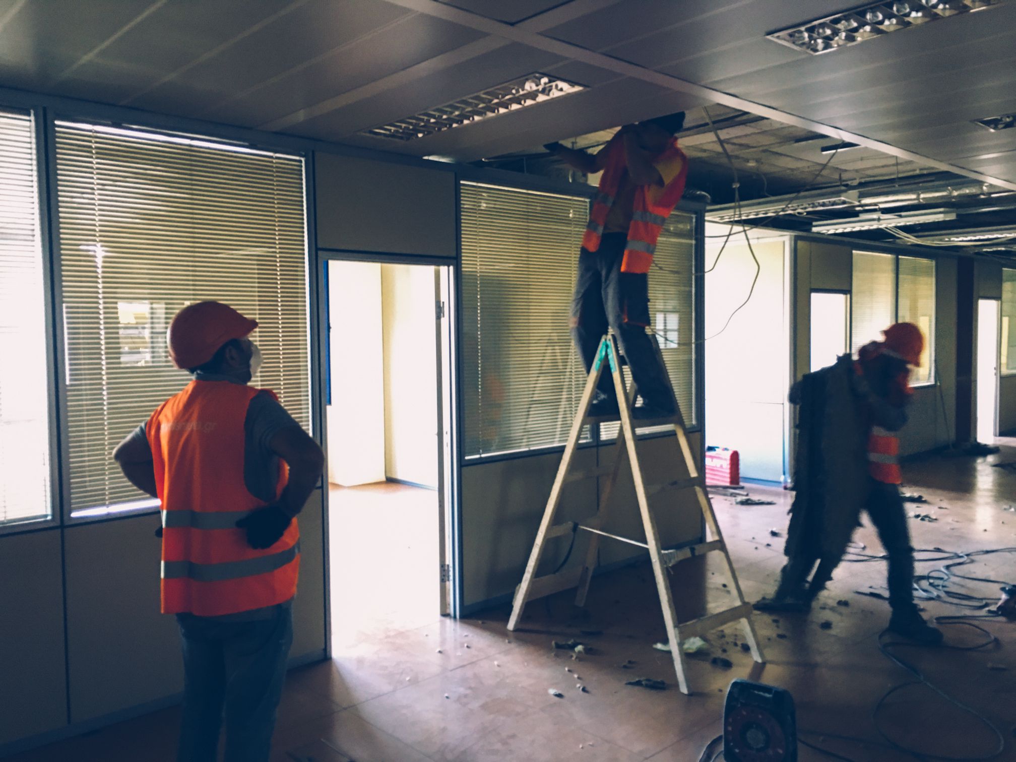 Τα προϊόντα αποξηλώσεων μεταλλικών οροφών, διαχωριστικών αλουμινίου και γυαλιού καθώς και τα μπάζα από τις αποξηλώσεις για την κουζίνα και λοιπών χώρων μεταφέρθηκαν με τη χρήση αναβατορίου για να μην γίνει οποιαδήποτε φθορά στο εσωτερικό του κτιρίου.