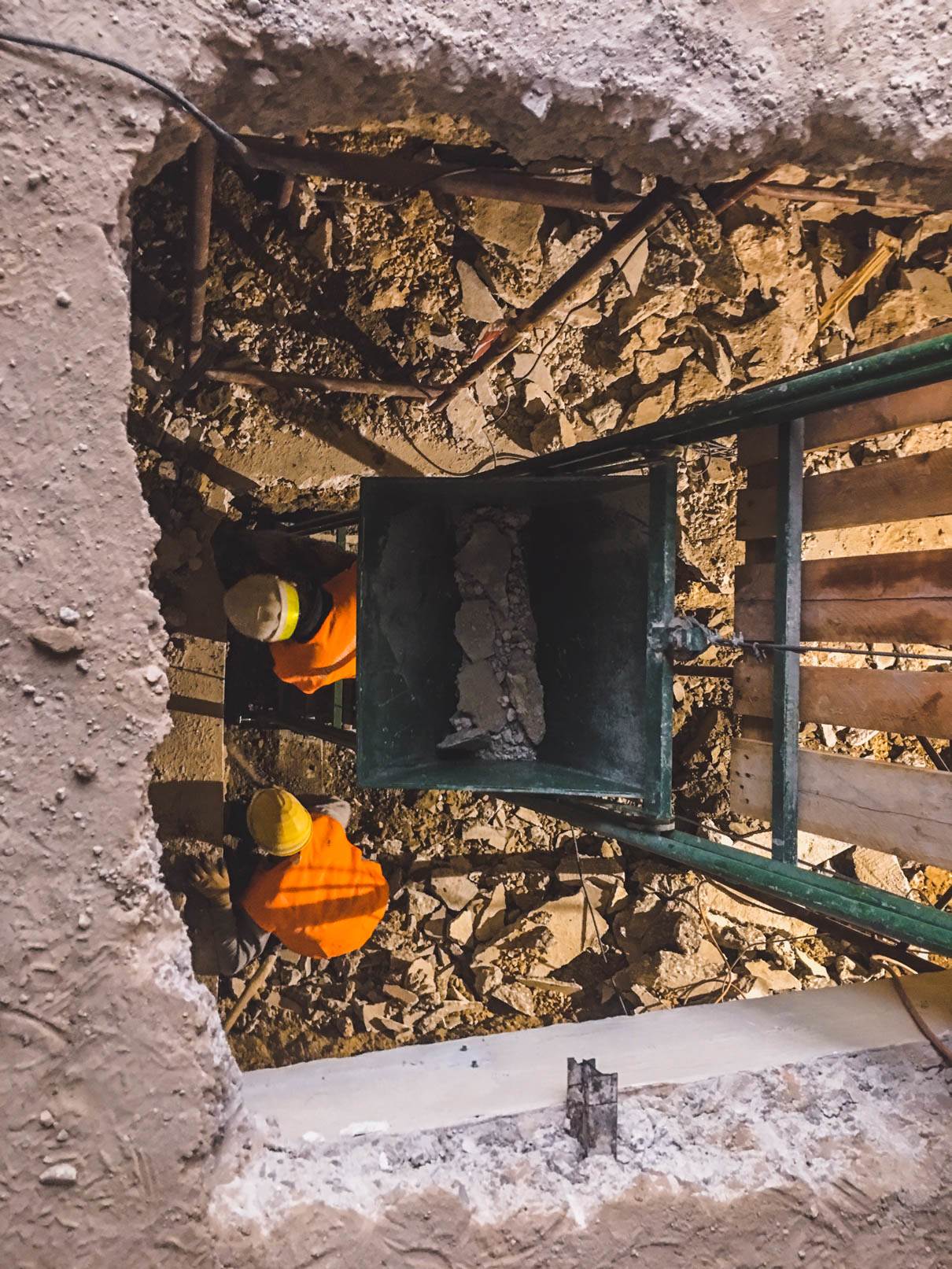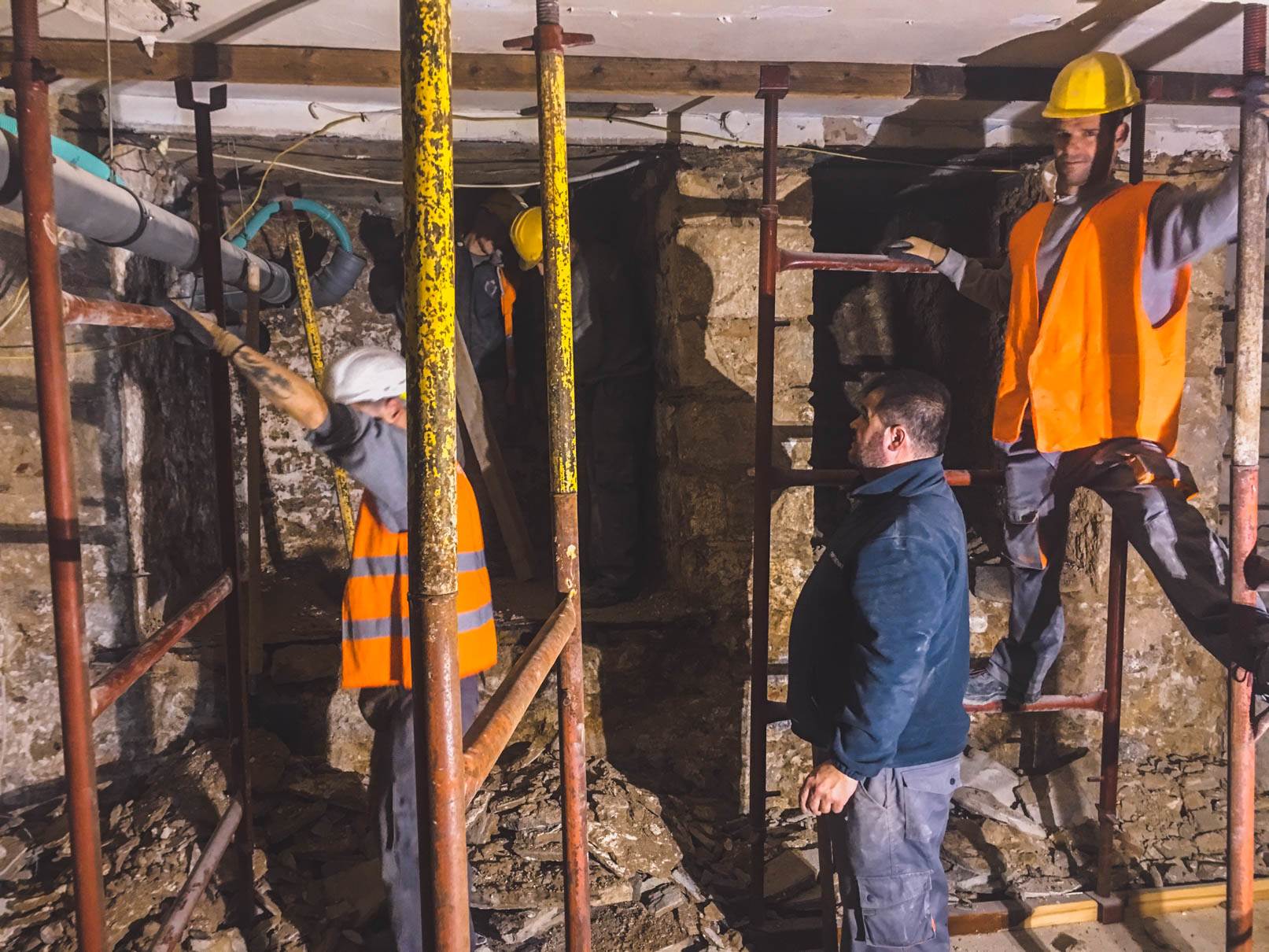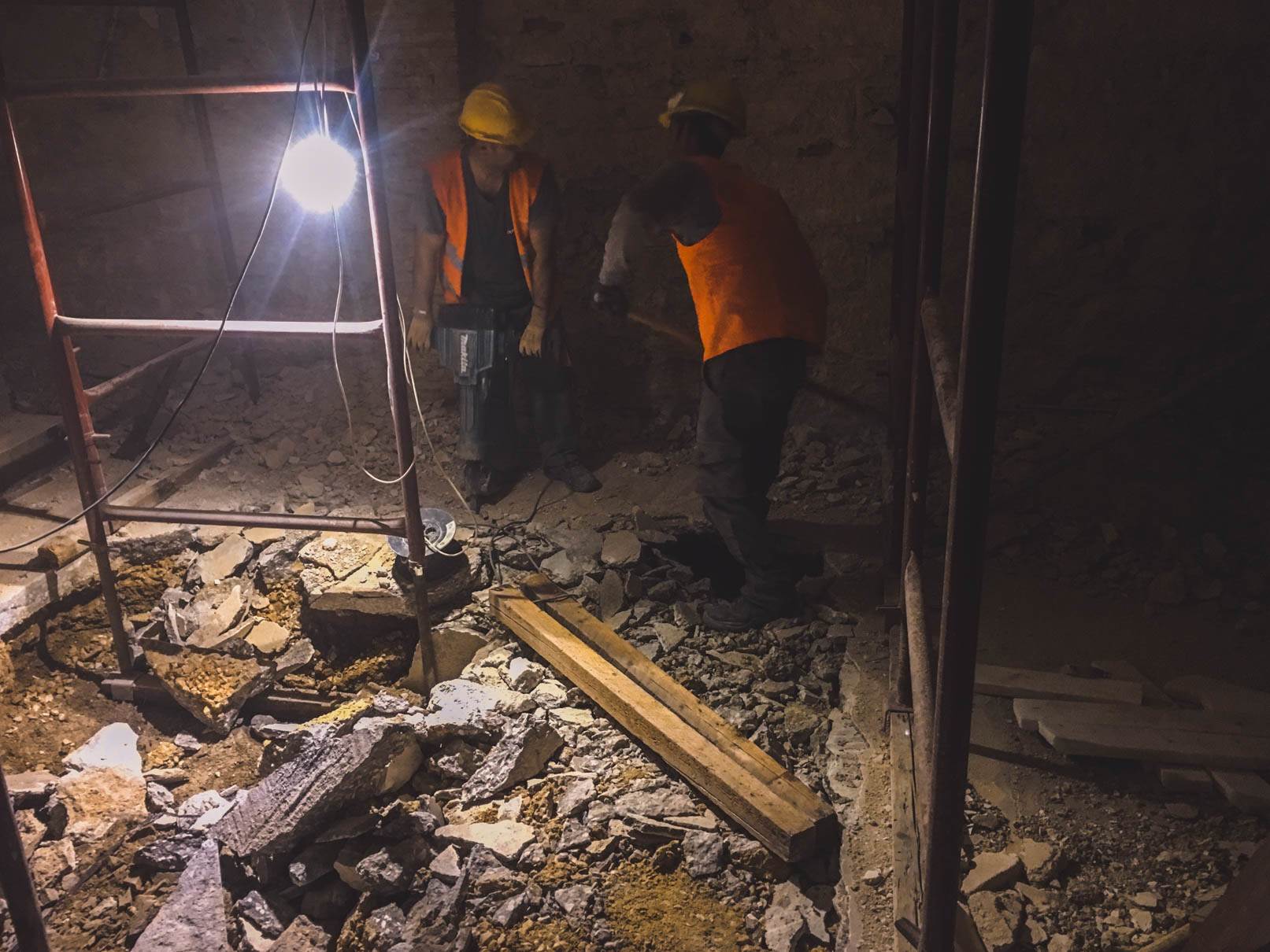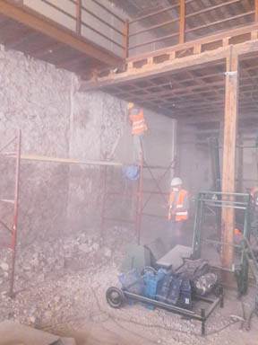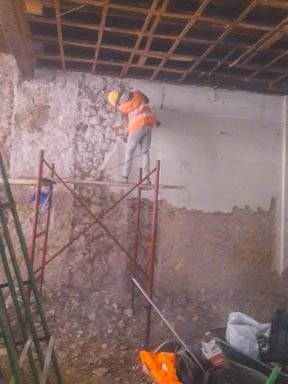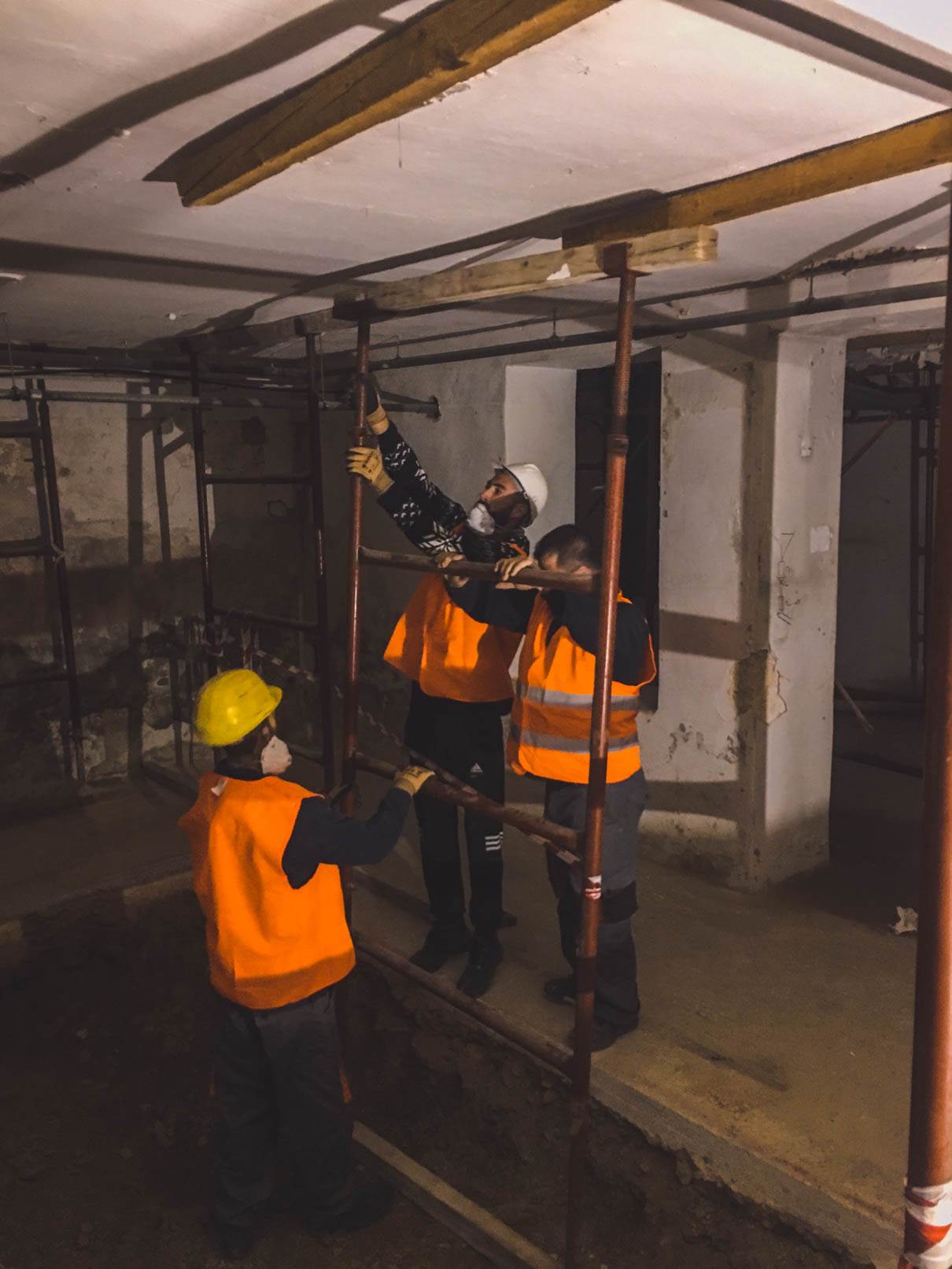 - Απομάκρυνση σκαλωσιάς υποστήριξης υφιστάμενης πλάκας δαπέδου ισογείου (μετά από αντίστοιχες οδηγίες του επιβλέποντος στατικών)