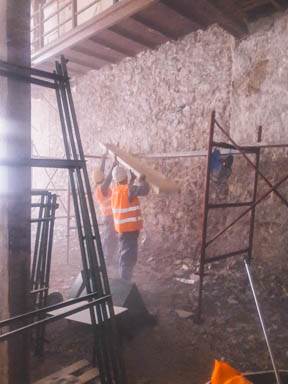 - Προστασια με αφρώδες ναυλον και ξυλοκατασκευη από κόντρα πλακε θαλάσσης 12 χιλ, ολων των μαρμάρινων κατασκευών (κεντρικό κλιμακοστάσιο, μαρμάρινοι εξώστες πρόσοψης και πίσω όψης). Επίσης προστασία των μαρμάρινων κατωφλιών των κουφωμάτων της πρόσοψης (ισόγειο και όροφοι).
