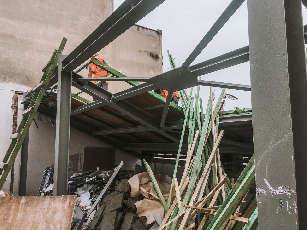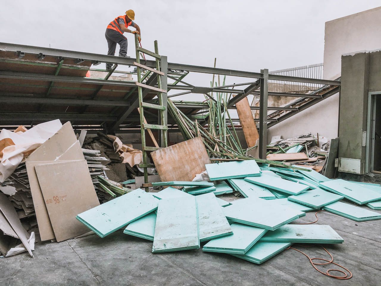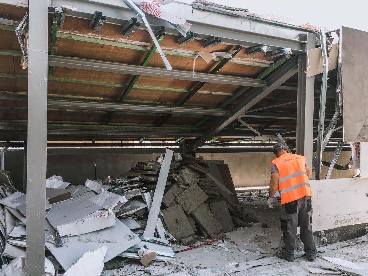 Αποκομιδή προϊόντων αποξήλωσης ακόμη και στα πιο δυσπρόσιτα μέρη, με τη βοήθεια ανυψωτικού μηχανήματος και σε σπάνιες - δύσκολες- περιπτώσεις, τηλεσκοπικού γερανού
