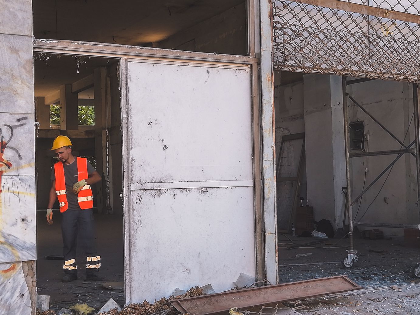 1. Αποξήλωση πρόσοψης (τζαμαρία – ρολλά ασφαλείας)
