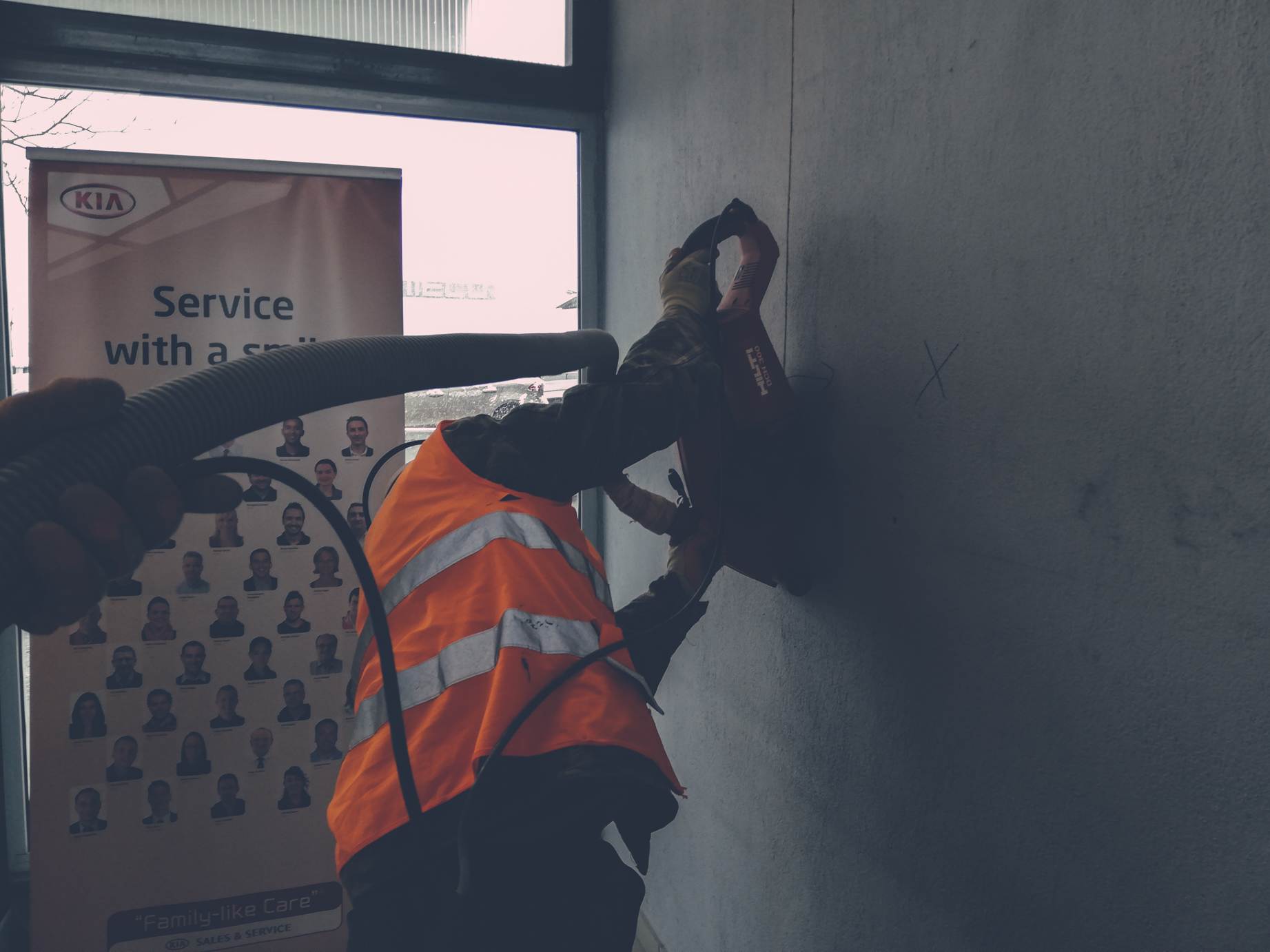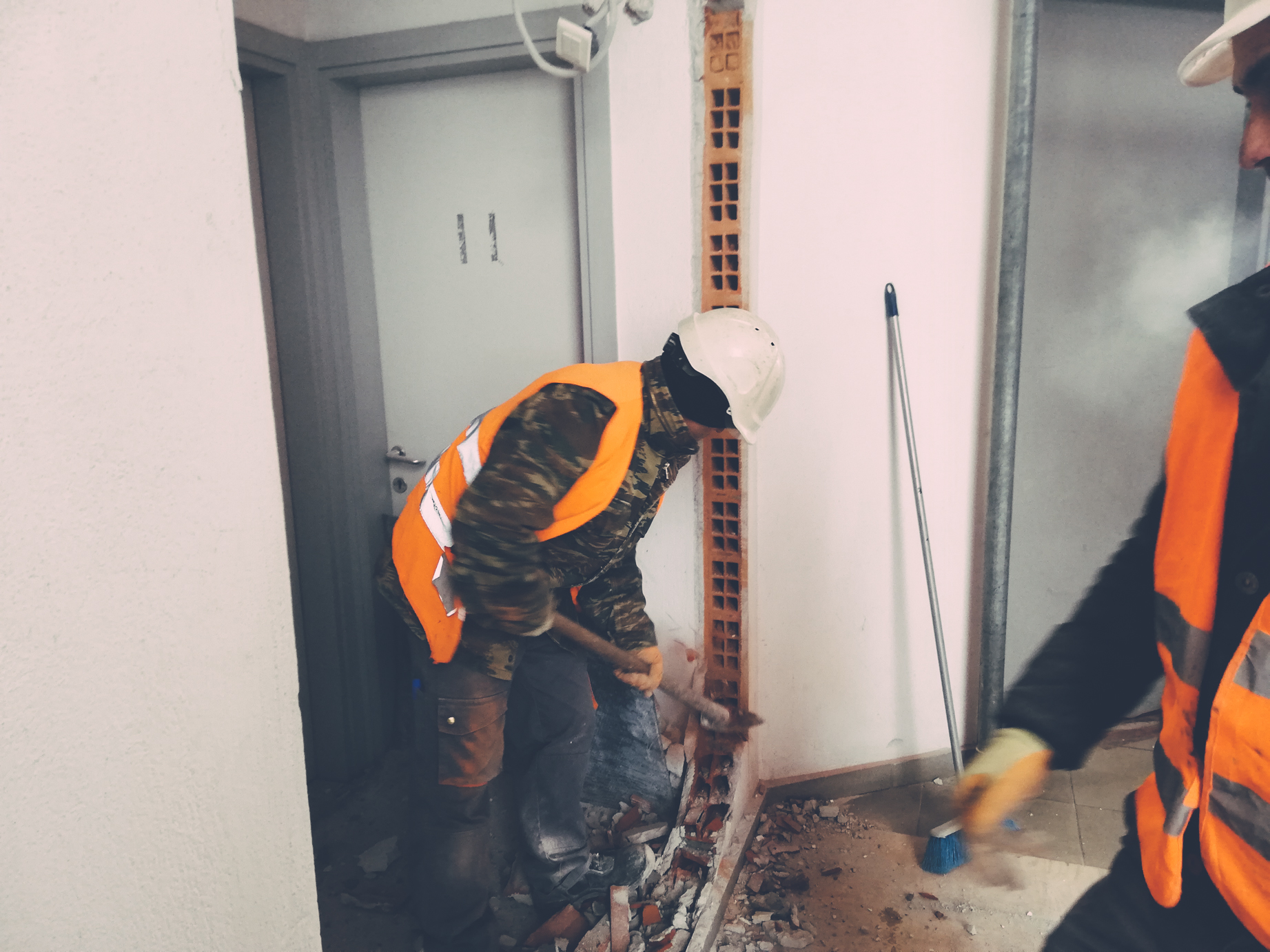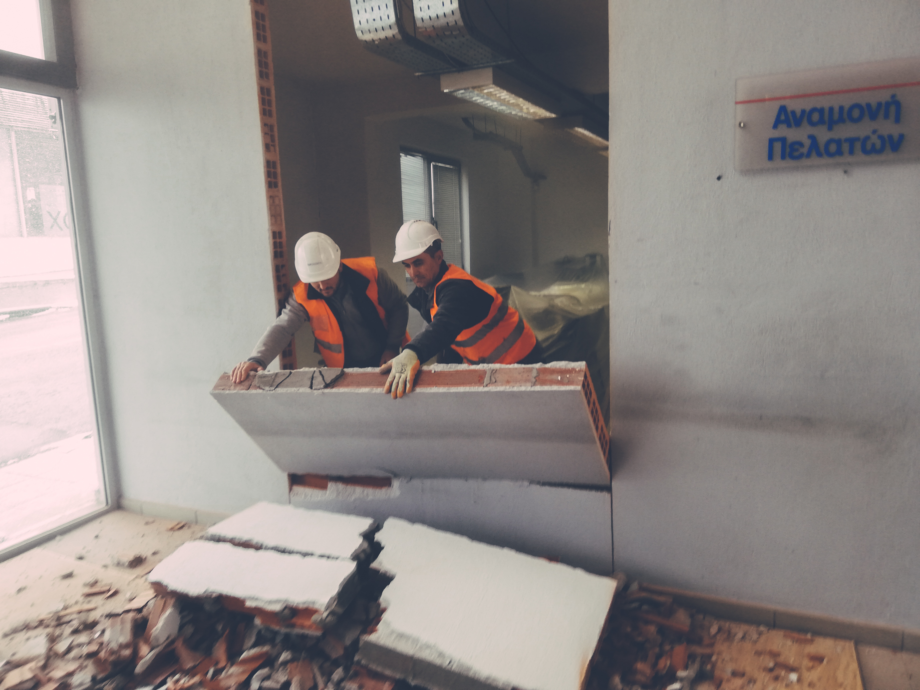 Η διάνοιξη θύρας σε τούβλο με αδιατάρακτη κοπή και σκούπα που συλλέγει τη σκόνη, χωρίς μερεμέτια και επιπλέον εργασίες, είναι τεχνική που μπορούν να εκτελέσουν μόνο εξειδικευμένα και άρτια καταρτισμένα συνεργεία.
