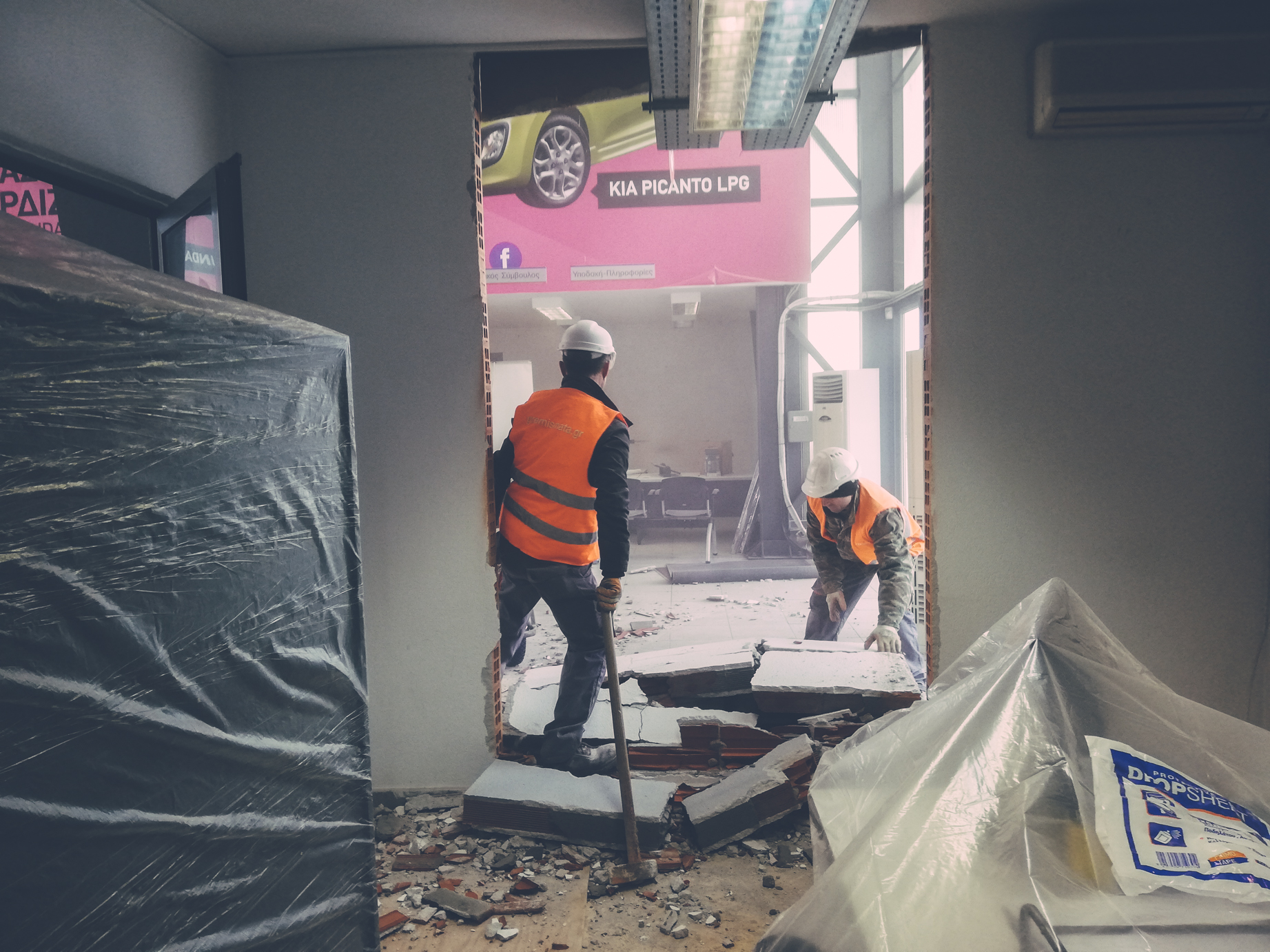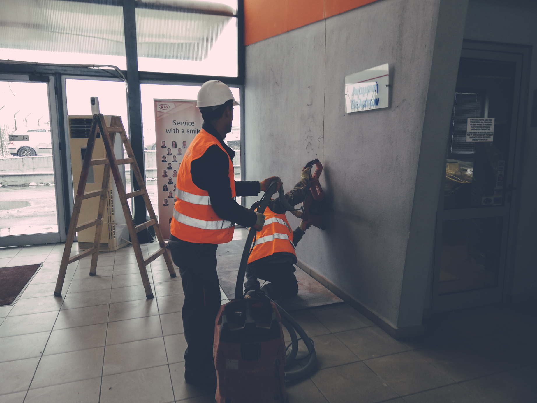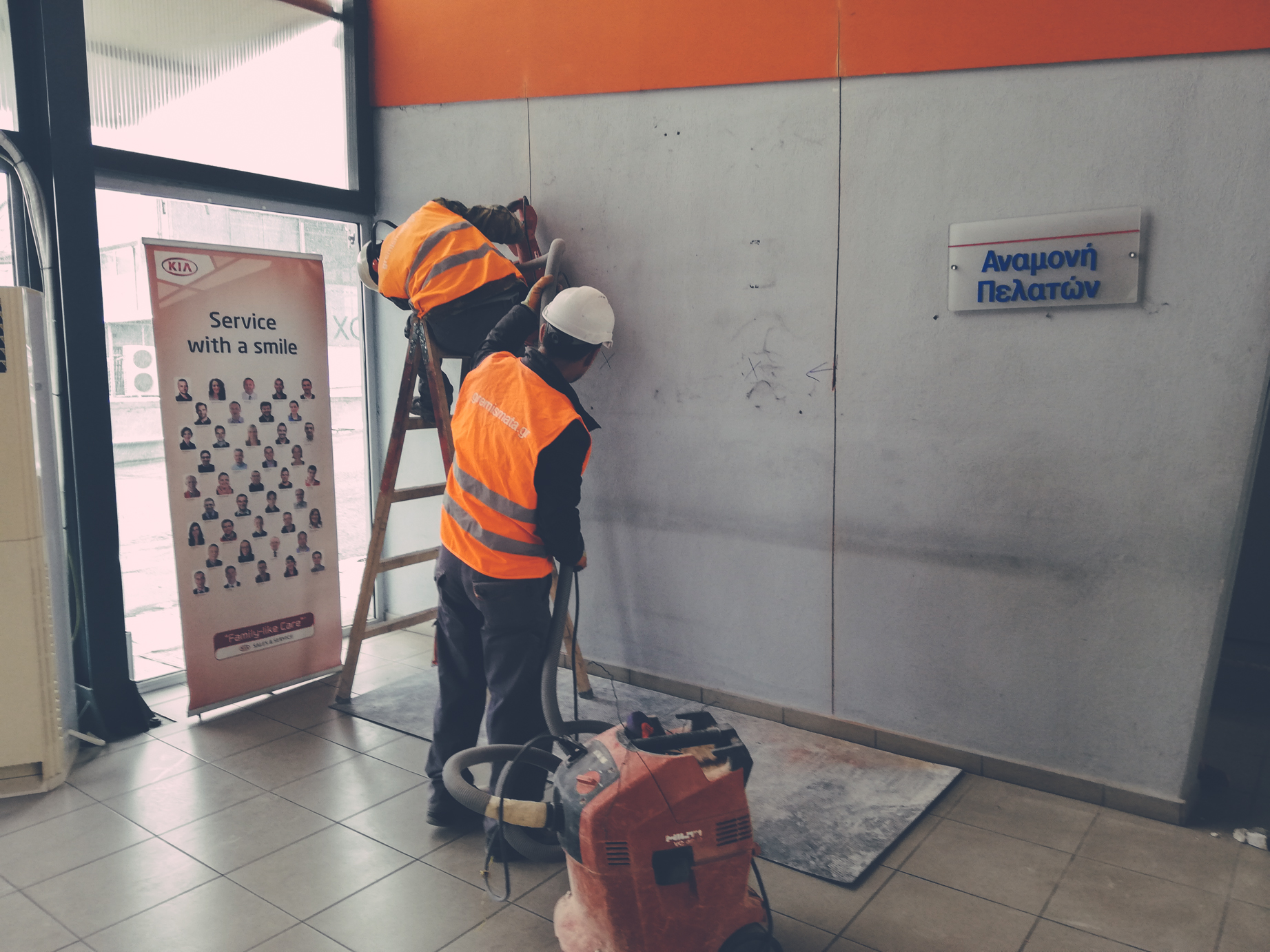 Η διάνοιξη θύρας σε τούβλο με αδιατάρακτη κοπή και σκούπα που συλλέγει τη σκόνη, χωρίς μερεμέτια και επιπλέον εργασίες, είναι τεχνική που μπορούν να εκτελέσουν μόνο εξειδικευμένα και άρτια καταρτισμένα συνεργεία.