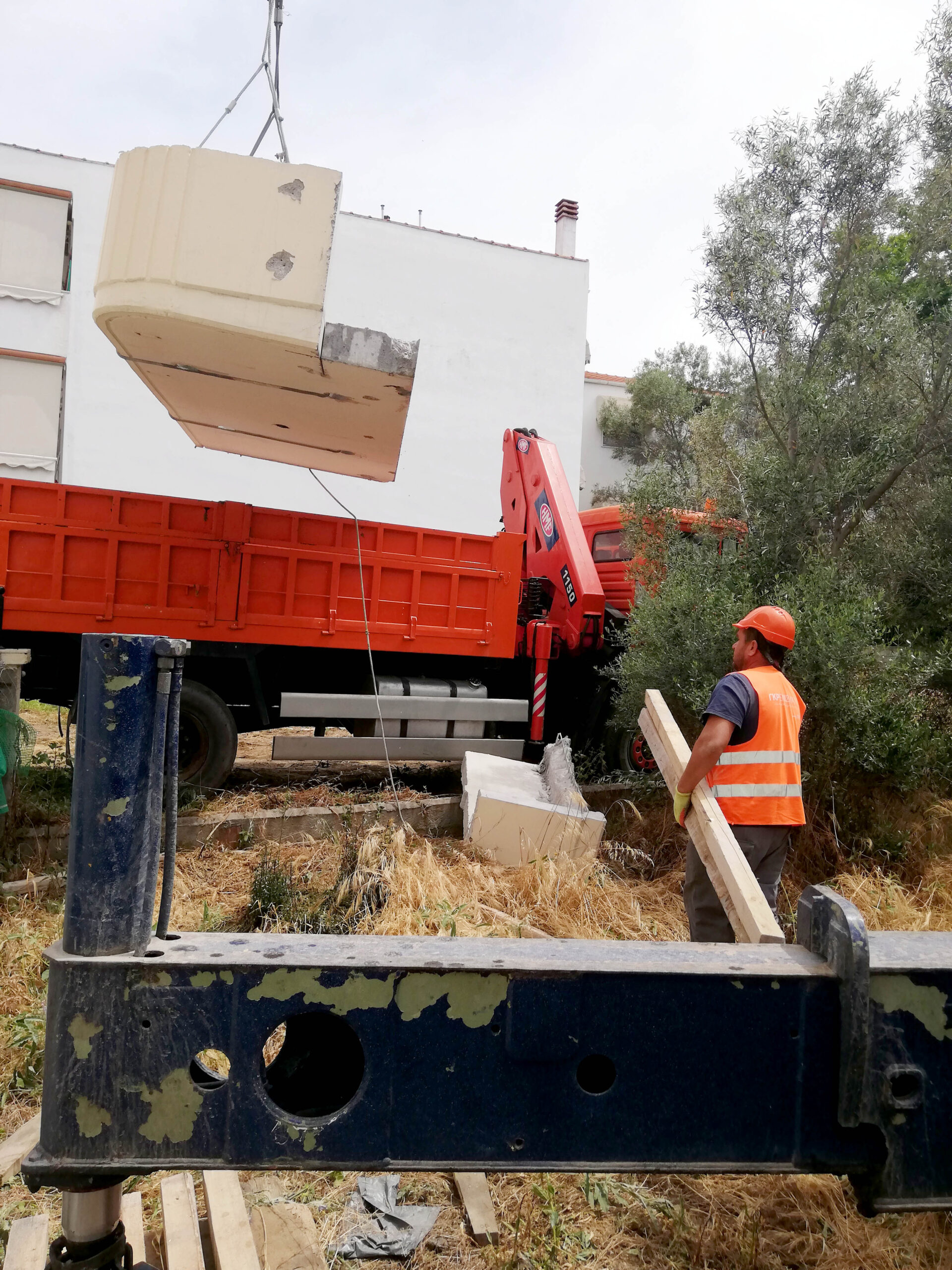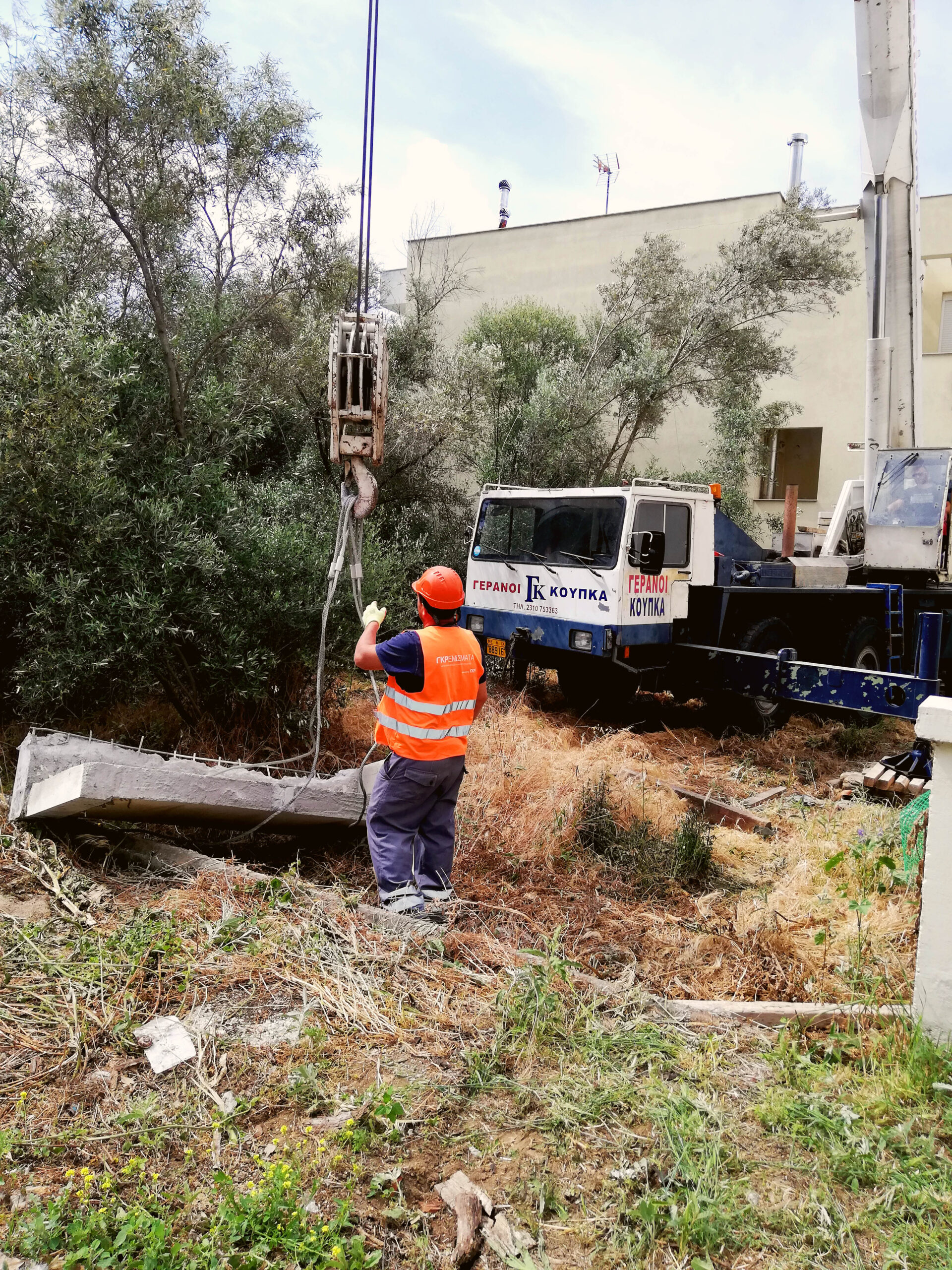 1. Αποκομιδή και μεταφορά μπαζών σε φορτηγά, με χρήση τηλεσκοπικού γερανού