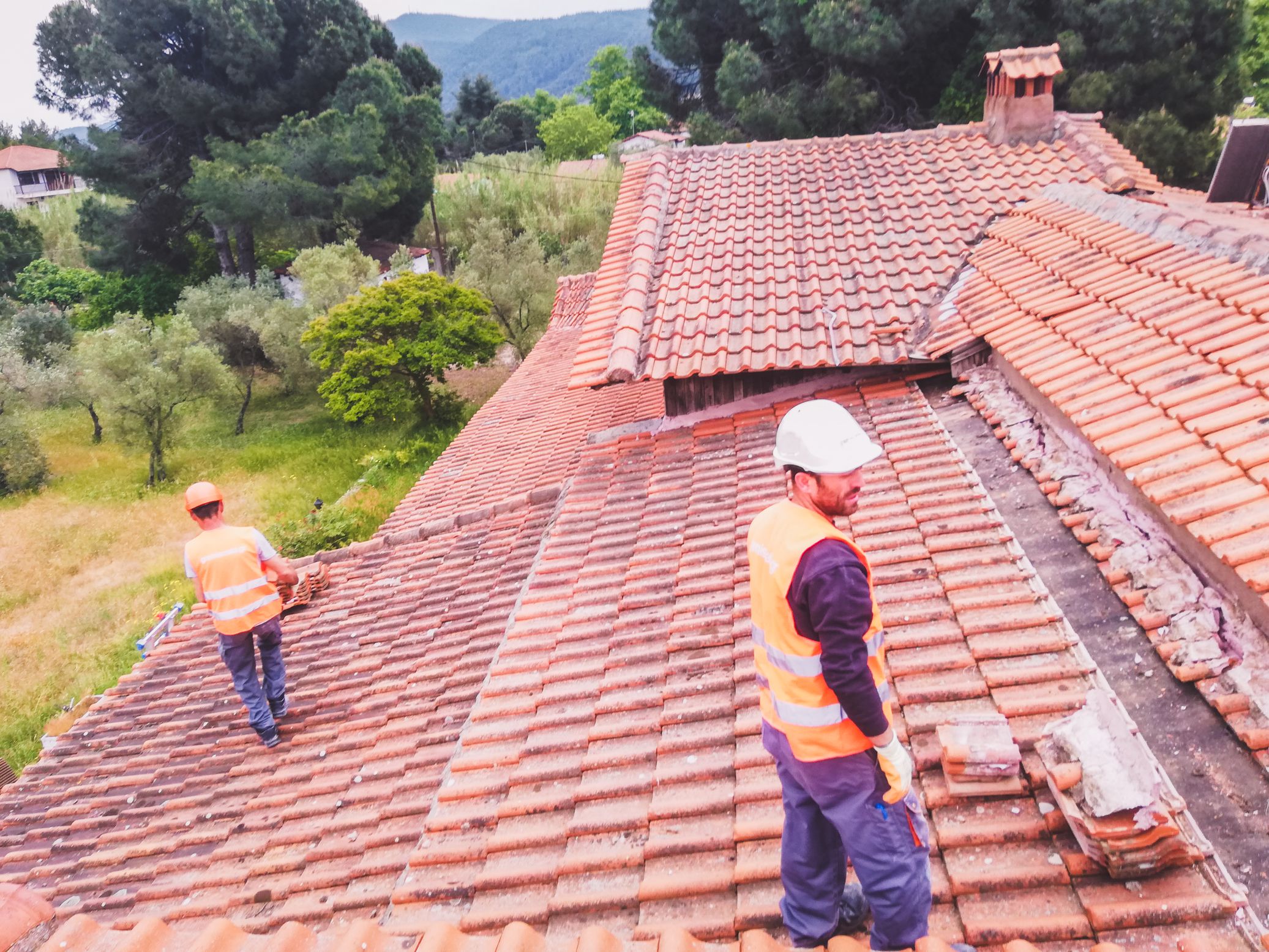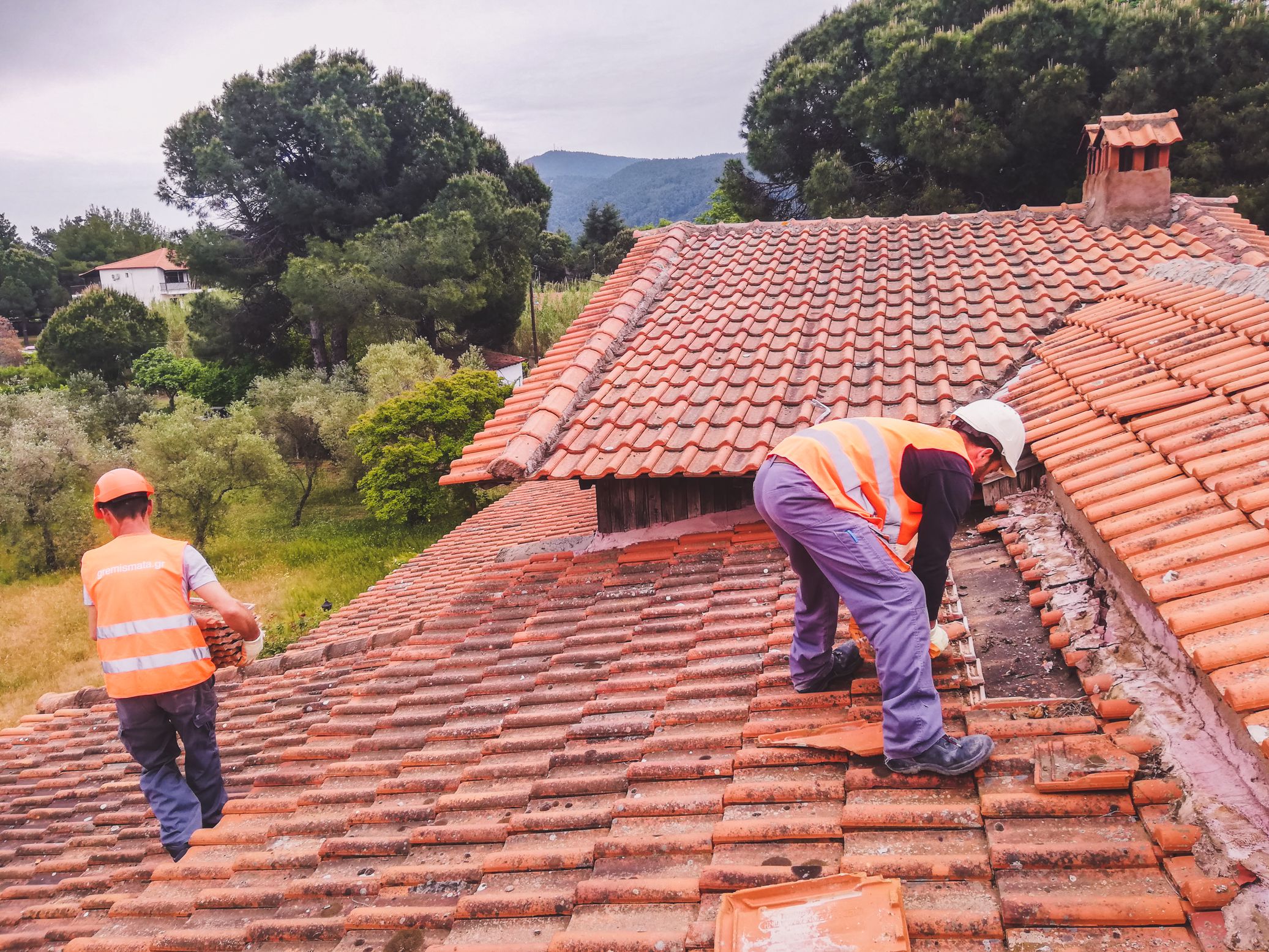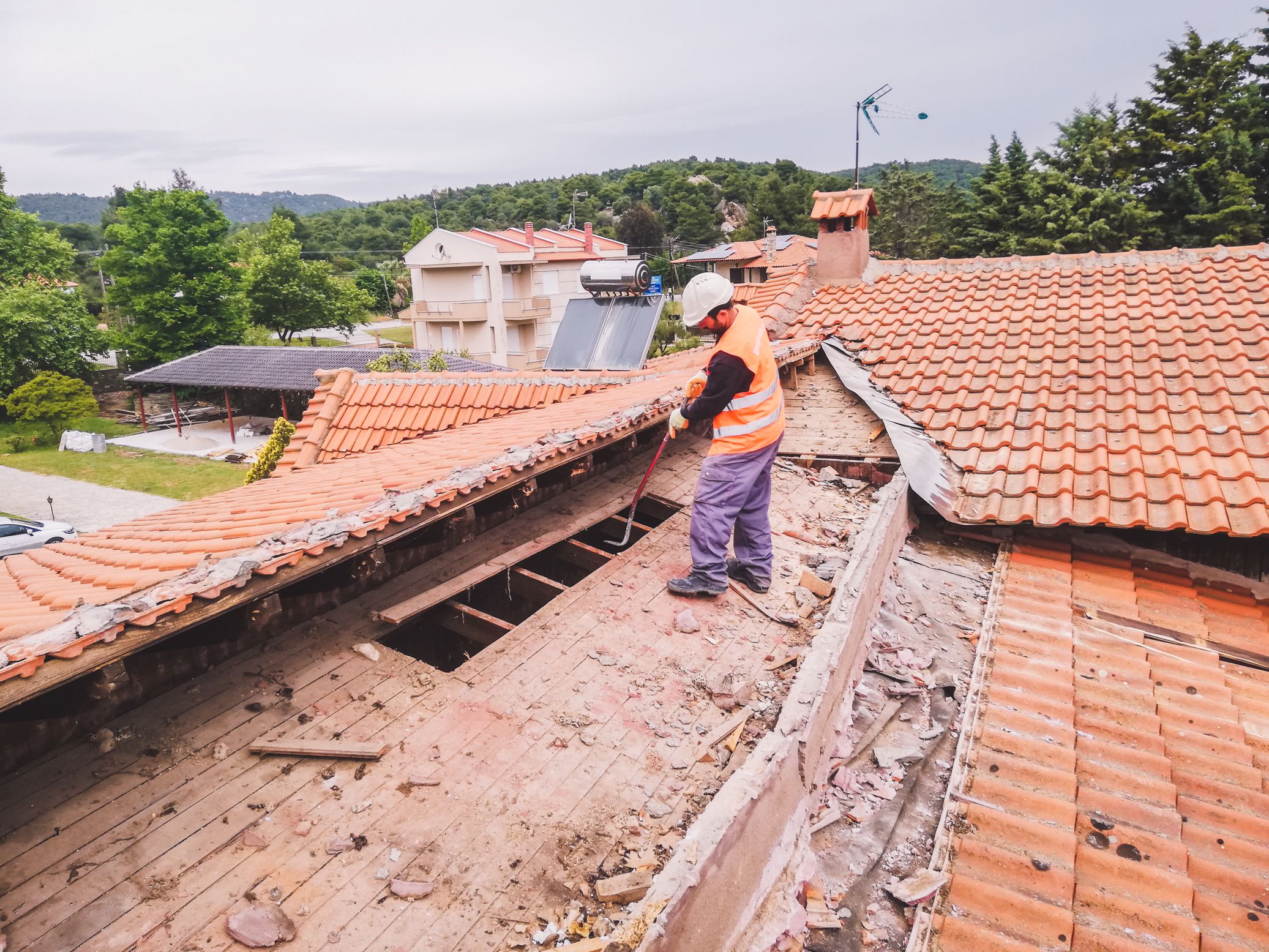 Αποξήλωση ξύλινης στέγης με κεραμιδιά