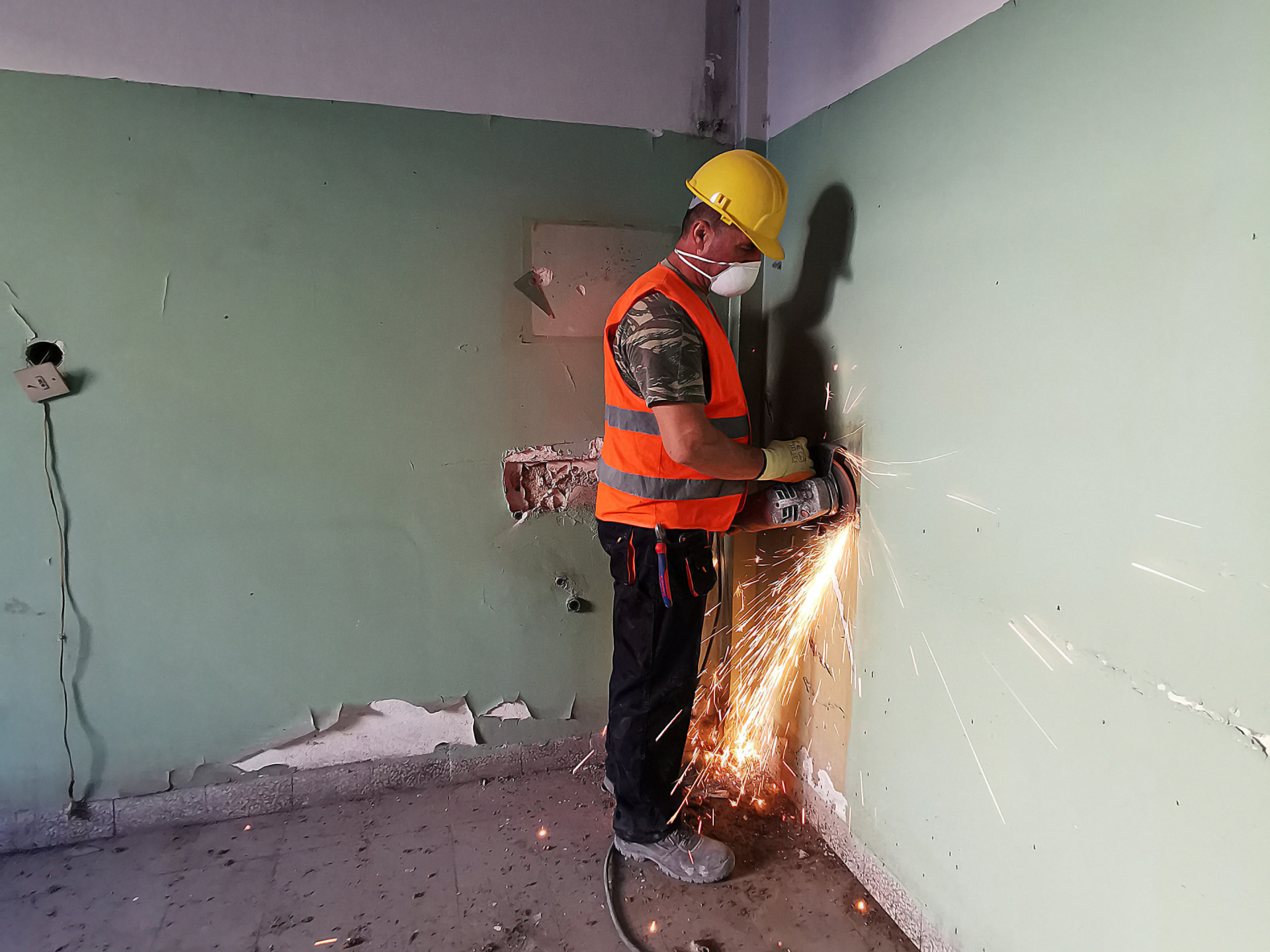 • Αφαίρεση από δωμάτια και διαδρόμους και των πέντε ορόφων πρίζες, διακόπτες, πίνακες ηλεκτρολογικούς, κ.τ.λ.