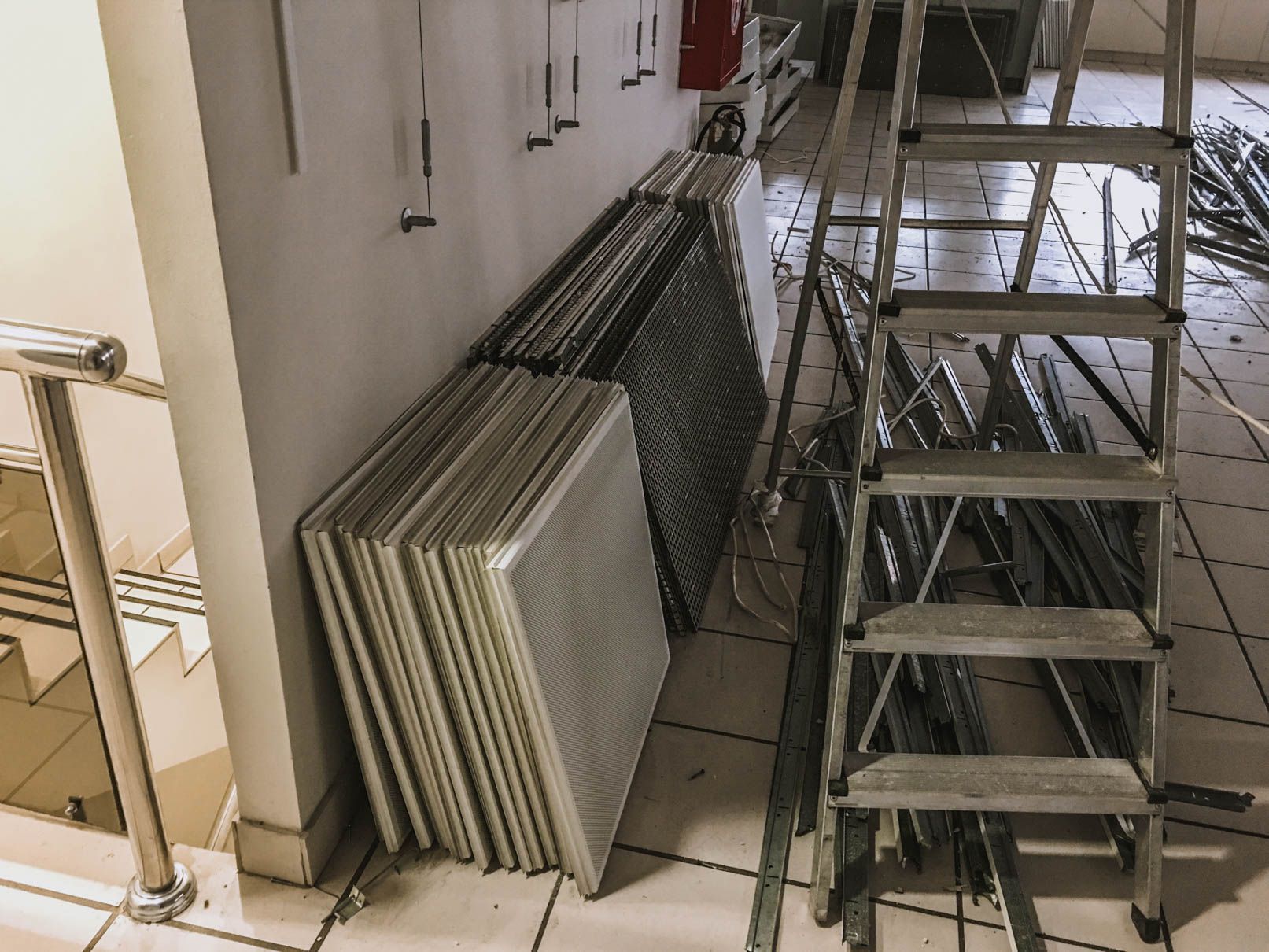 - Αποξήλωση ψευδοροφής σε χώρο αναμονής, διάδρομο, WC, κουζίνα