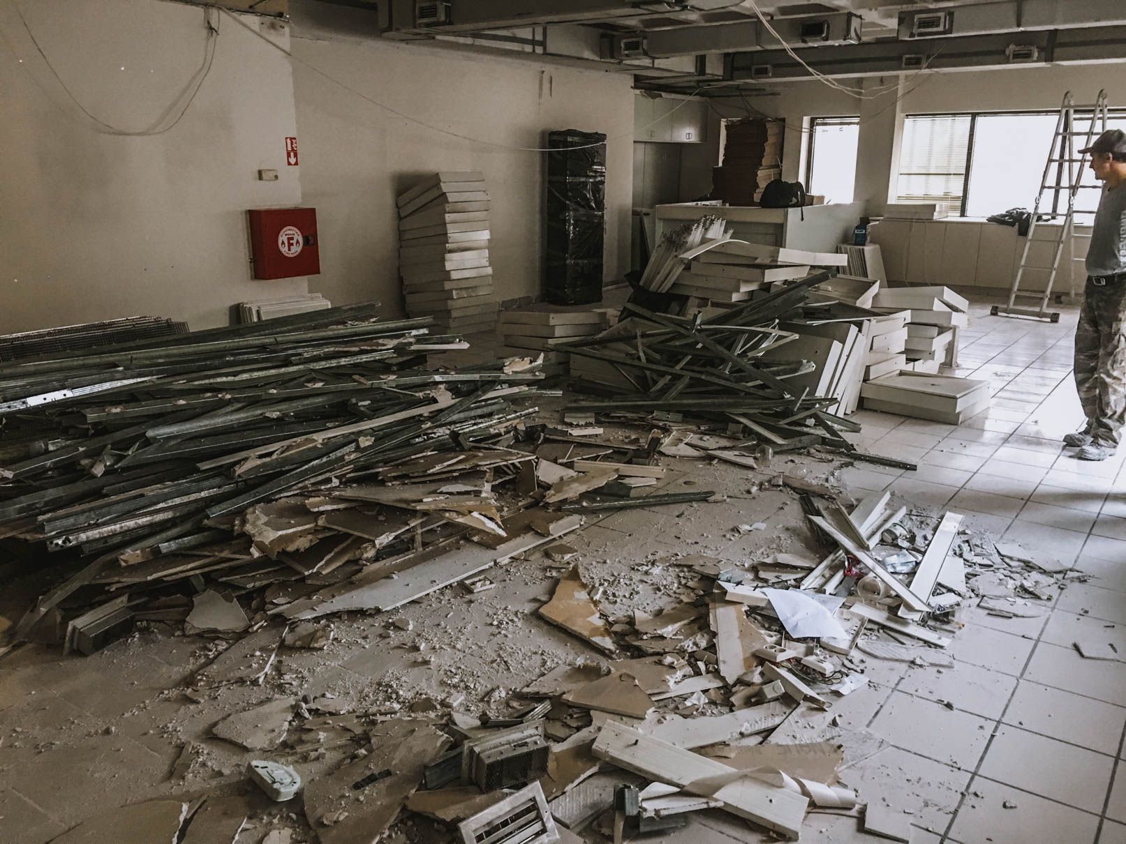 - Αποξήλωση μετά προσοχής ερμαρίων χώρου αναμονής και διαδρόμου