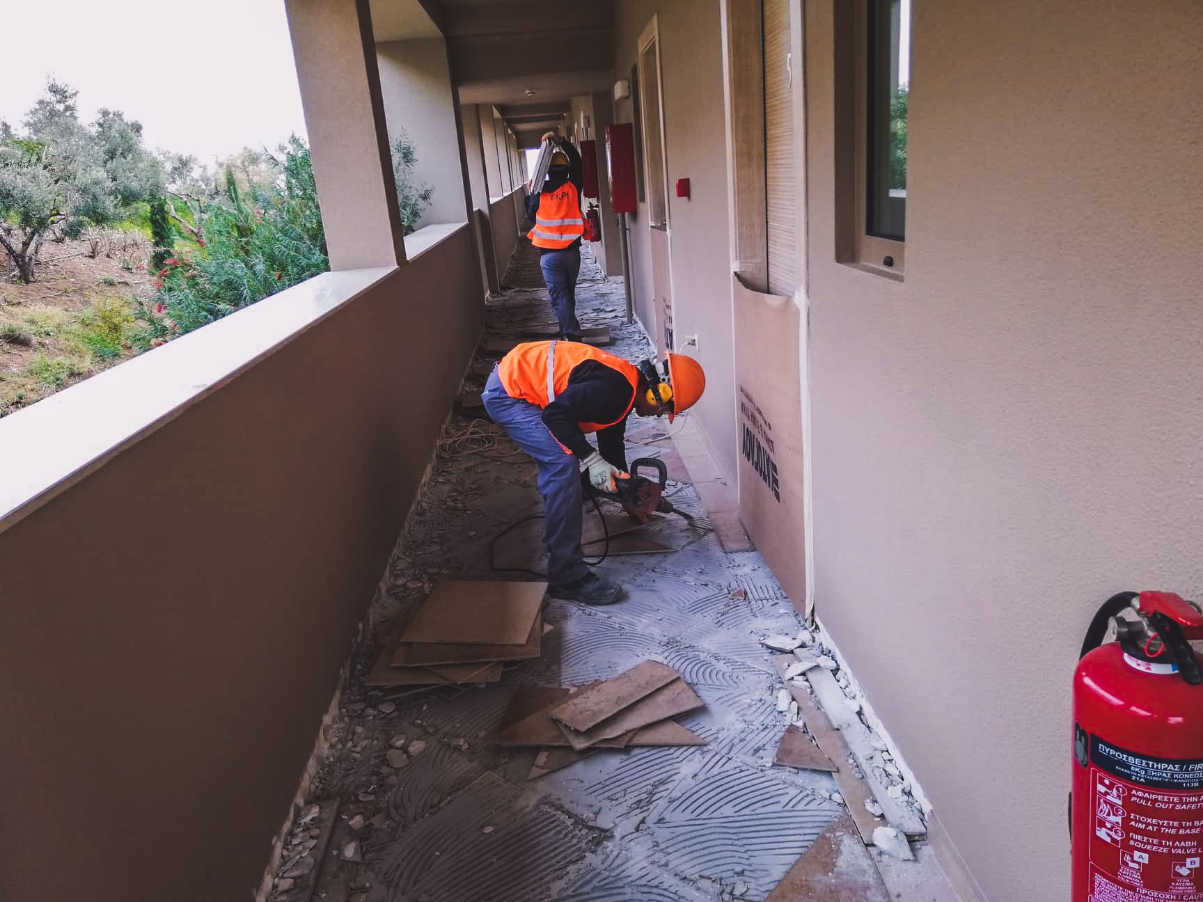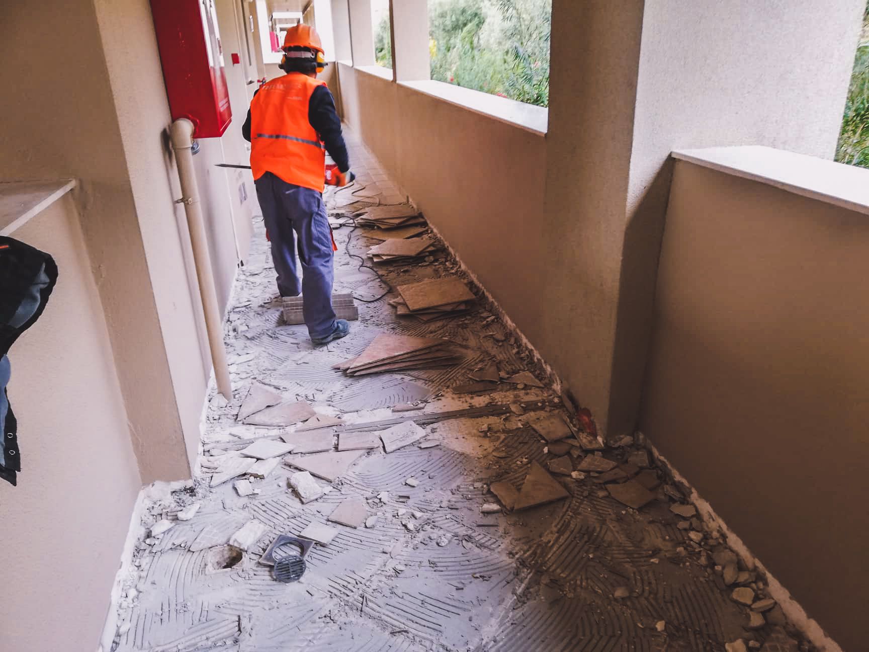 Αποξήλωση και απόρριψη κεραμικών πλακιδίων δαπέδου